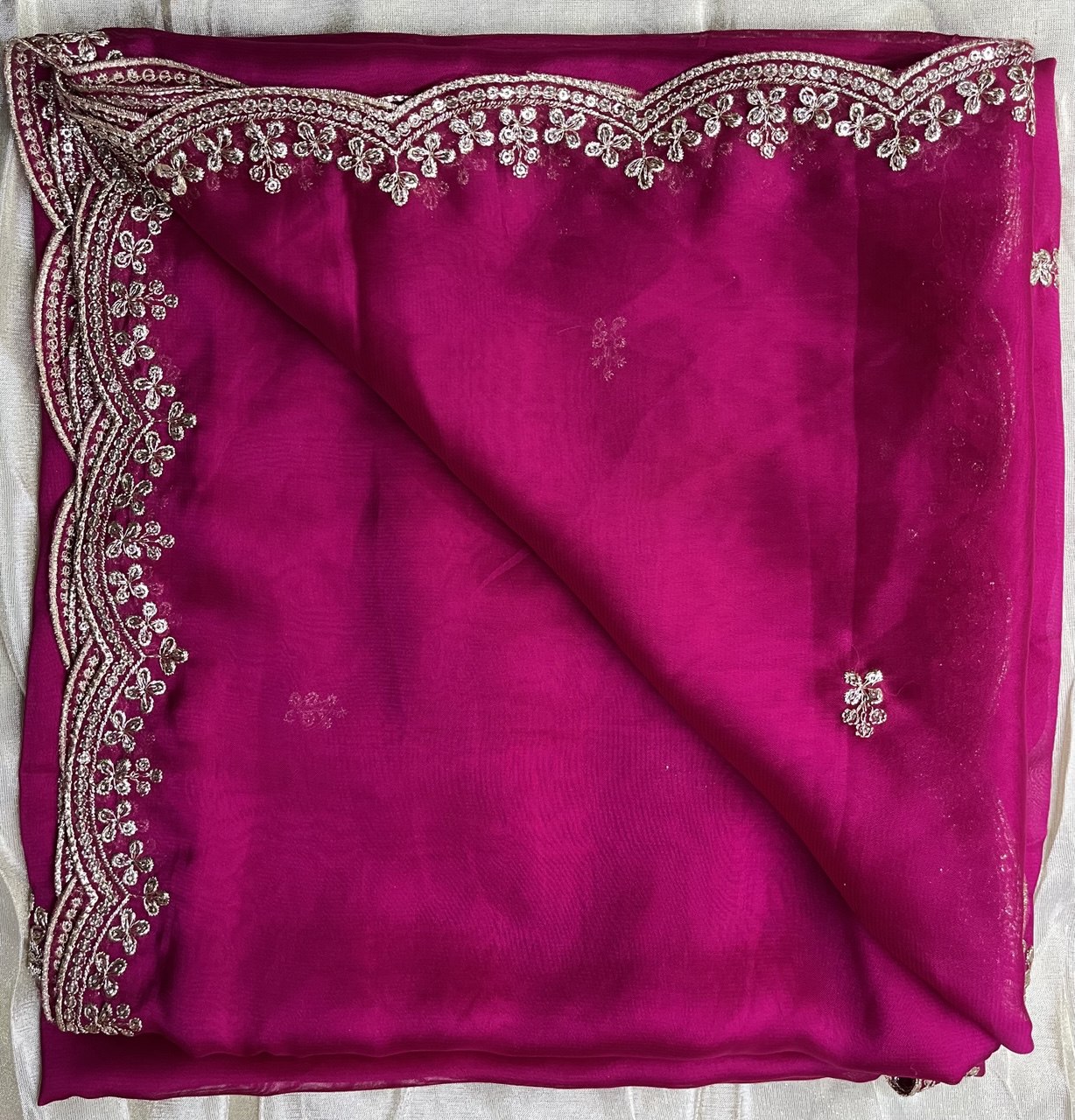 Elevate your ethnic look with this stunning 4-Side Designer Pink Cutwork Dupatta, crafted with intricate detailing and elegance. The delicate cutwork along all four borders creates a graceful silhouette, while the soft pink hue adds a touch of feminine charm. Perfect for festive occasions, weddings, or special gatherings, this dupatta pairs beautifully with lehengas, suits, or indo-western outfits. A perfect blend of tradition and modern craftsmanship, itβs a must-have for every fashion-forward wardrobe.